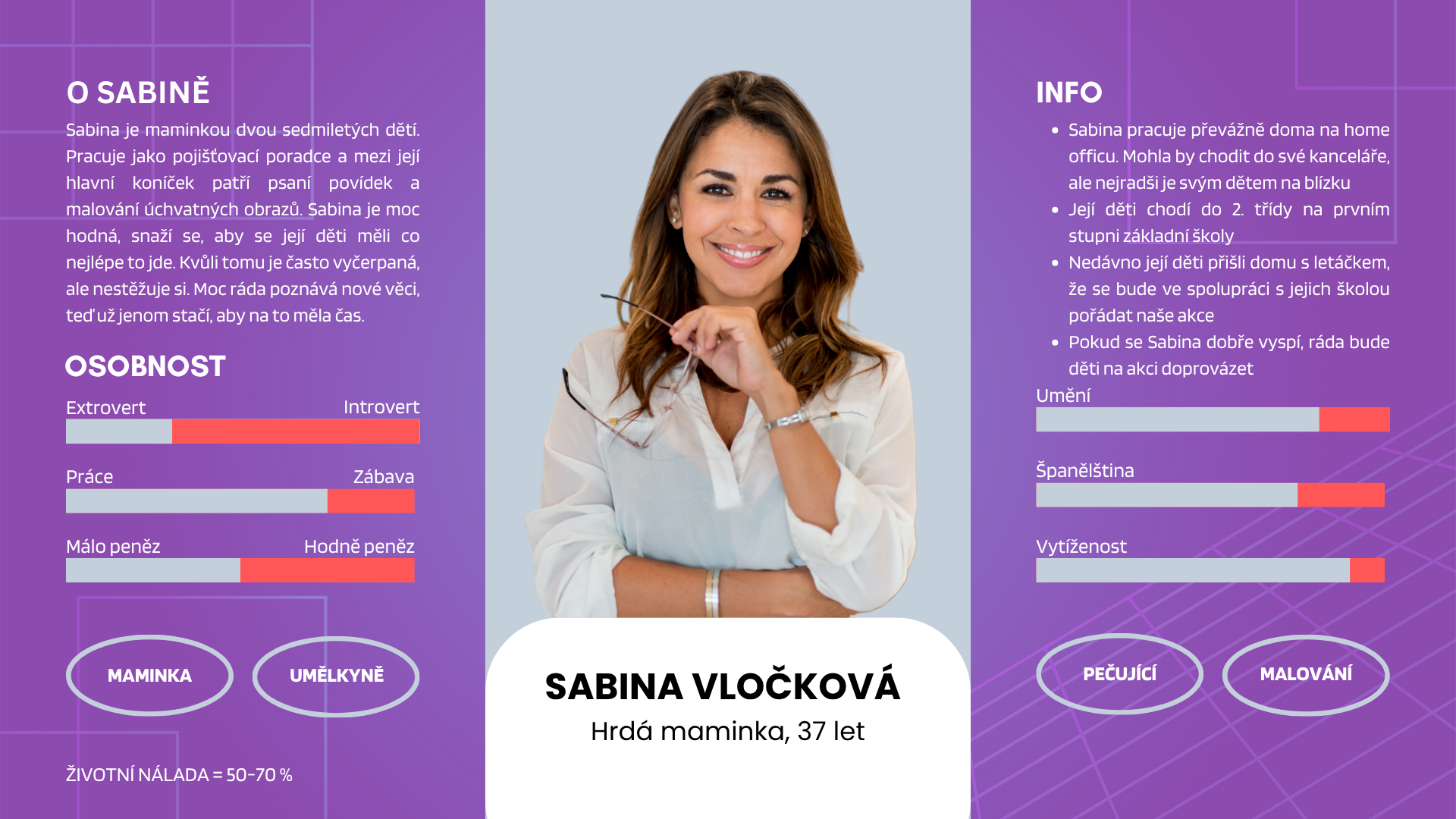 To jsou má doporučení, jak vytvořit bezva personu. Samozřejmě jsem zde neřekl úplně všechno, co by persona mohla obsahovat, teď už to záleží jen na tobě, co personě všechno vymyslíš, definuješ a jaký rozsah této marketingové analýzy si určíš. V obrázcích ti pro ukázku přikládám, jak by taková persona mohla vypadat. Ať se daří. 😀